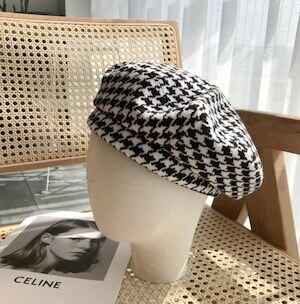 ✅千鳥格子ベレー帽 帽子 ハット ガーリー D66