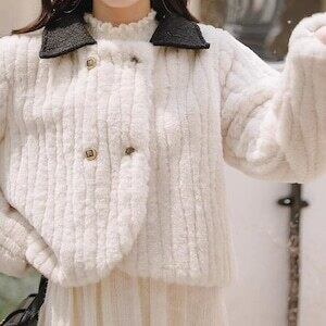✅フェイク襟付き ショート丈ファーコート ダブルボタン ガーリー E665
