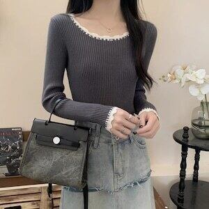 ✅ニットドッキングデザイントップス トップス ガーリー カジュアル E642