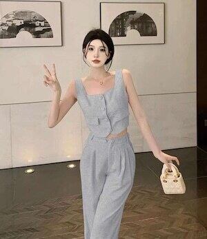 ✅ ノースリーブカジュアルセットアップトップス ワイドパンツ E263