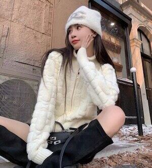 ✅ジップアップセーター ハイネックニット エレガント カジュアル E703