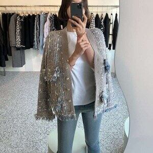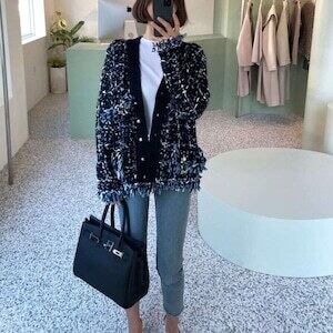 ✅フリンジ風カーディガン ミックスカラー カーディガン エレガント E698