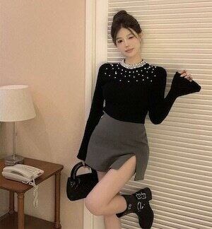 こちらのセーターは、パールのデザインにこだわり、1つずつ丁寧に装飾しています。美しい輝きと繊細なデザインが、上品さを演出します。シンプルながらもエレガントなデザインは、周りからの注目を集めること間違いなしです。