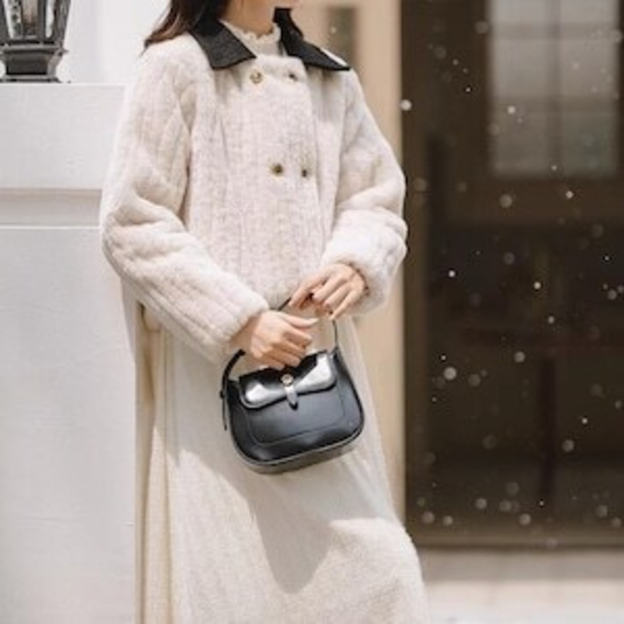 キュートなガーリースタイルに欠かせないアイテム、フェイクファーコートが登場しました!ダブルボタンと襟付きのデザインがトレンド感を演出し、ショート丈が女性らしいシルエットを作り出します。寒い季節にふわふわの触り心地で暖かく包まれる感覚は、まさに夢心地。着るだけでおしゃれ度が格段にアップします。