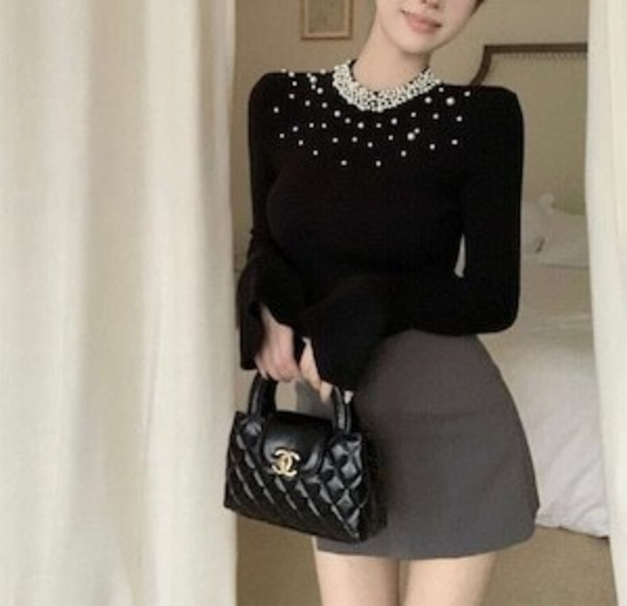 華やかなパールデザインが目を引く、エレガントなニットセーターです。フェミニンさを引き立てるフレア袖が特徴で、デートやパーティーなど特別な日にぴったりの一着です。柔らかな肌触りと伸縮性のある素材で、着心地も抜群です。さらに、細部までこだわった縫製と高品質な素材で作られているので、長くお使いいただけます。
