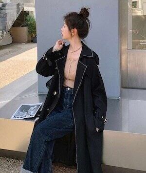 ✅ ステッチトレンチコート コート Aステッチ E459ロングライン エレガント
