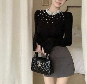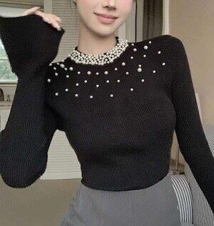 こちらのセーターは、パールのデザインにこだわり、1つずつ丁寧に装飾しています。美しい輝きと繊細なデザインが、上品さを演出します。シンプルながらもエレガントなデザインは、周りからの注目を集めること間違いなしです。