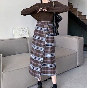 ✅ ウールチェック柄スカート ウールスカート レトロ ガーリー E714