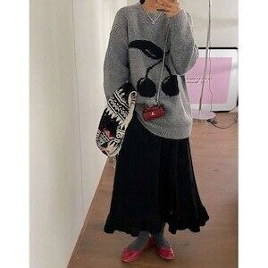 ガーリーで可愛らしいデザインのチェリーモチーフセーターが登場しました。フロントには立体的なチェリーのモチーフがあり、一枚で特別感のあるコーディネートを演出します。トレンドのゆったりとしたシルエットで、体型を気にせずに着ることができます。さらに、柔らかく肌触りの良い素材を使用しているので、快適な着心地を実現しました。寒い季節にぴったりなアイテムですので、この機会にぜひお試しください。華やかさを引き立てるセーターで、おしゃれを楽しんでみませんか?